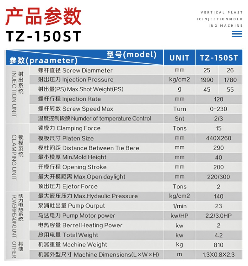 TZ-150ST小型(xíng)全新标準注塑機(ji)