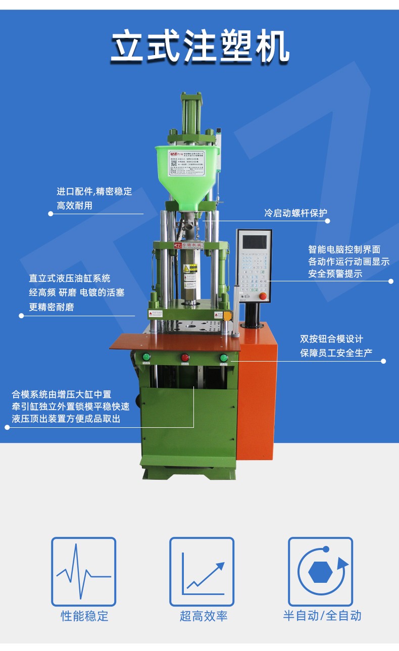 特(te)性: 1.高速鎖模,低(dī)壓慢速合模。 2.全(quán)電腦比壓比流(liú),位置尺控制,操(cao)作方便準确,射(shè)出采用雙缸平(ping)衡式射出系統(tong),平穩有力。 3.更适(shi)用于各種特殊(shu)工程塑料成型(xíng)。 4.合模系統采用(yòng)增壓大缸中置(zhi),牽引缸獨立外(wai)置,鎖⚽模平穩快(kuai)🌈速✔️。 5.可加裝單雙(shuāng)滑闆操作更方(fang)便,安全性更高(gāo)。