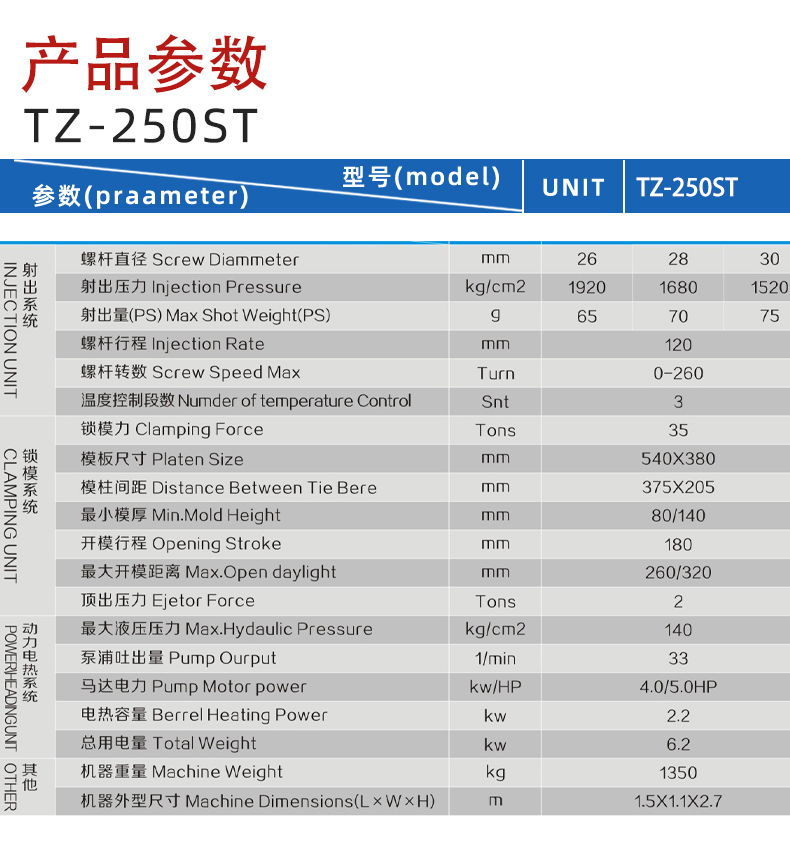 TZ-250ST全(quán)新小型注塑機(ji)